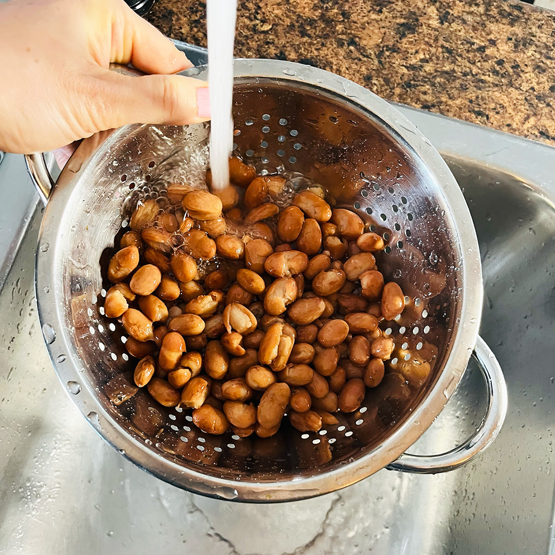 Add in the canned beans and beef, chicken or veggie stock.