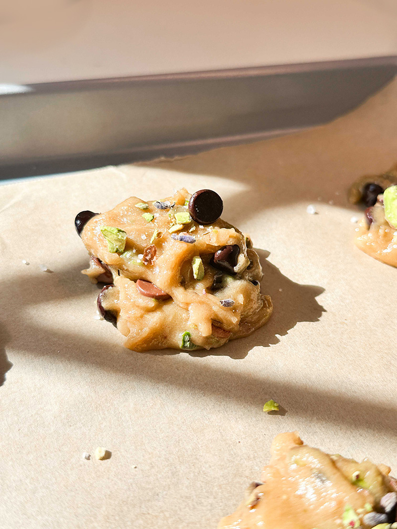 Her Pistachio + Lavender Bloom Bites bring together rustic, earthy flavors with a floral twist, creating soft, olive oil-based cookies that feel both indulgent and fresh. The olive oil, lavender, and pistachio combination mirrors the Mediterranean way of baking—celebrating what’s local, fragrant, and full of character.