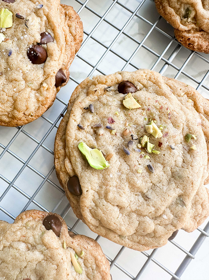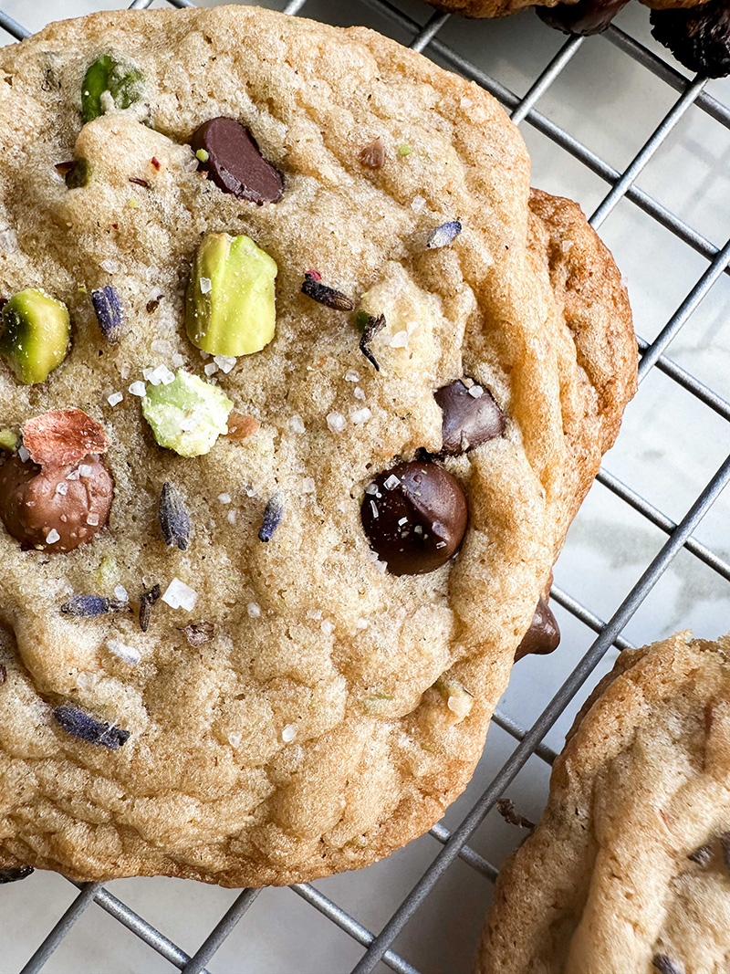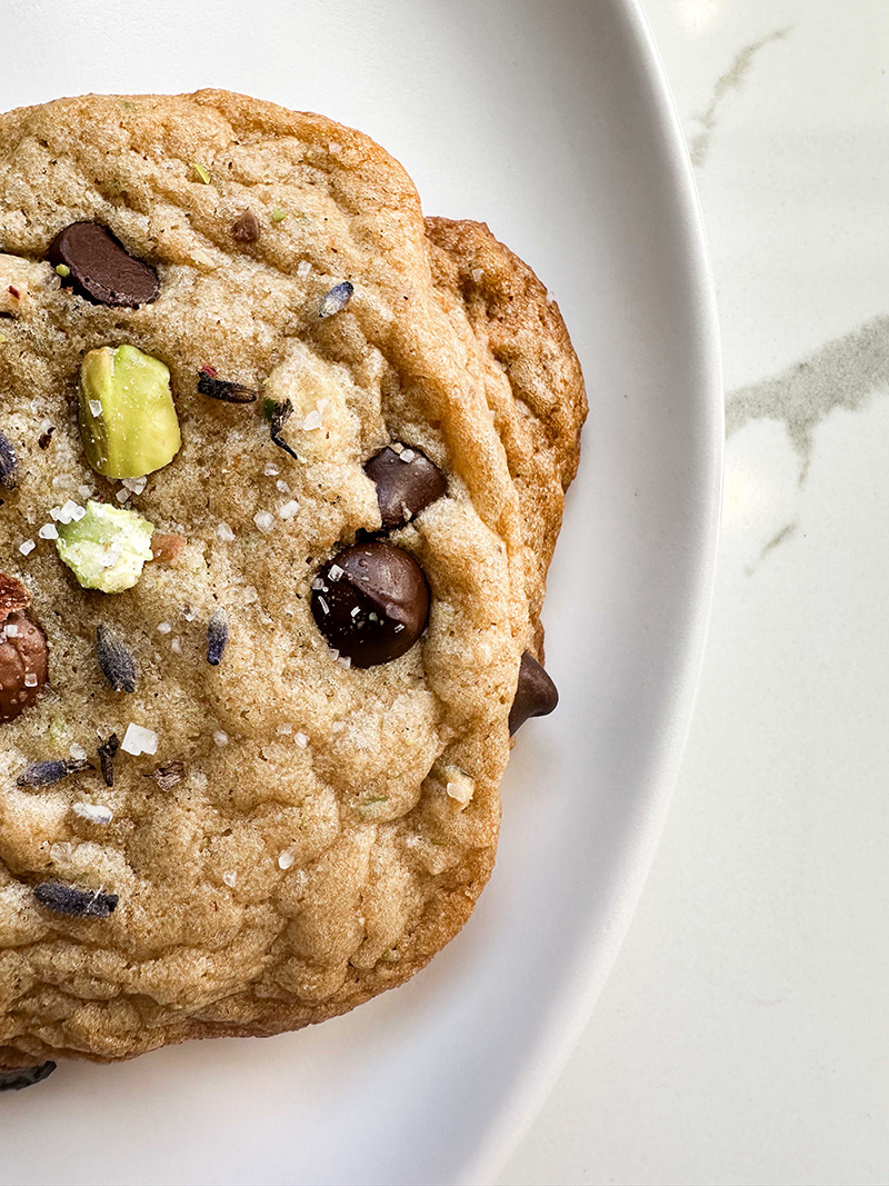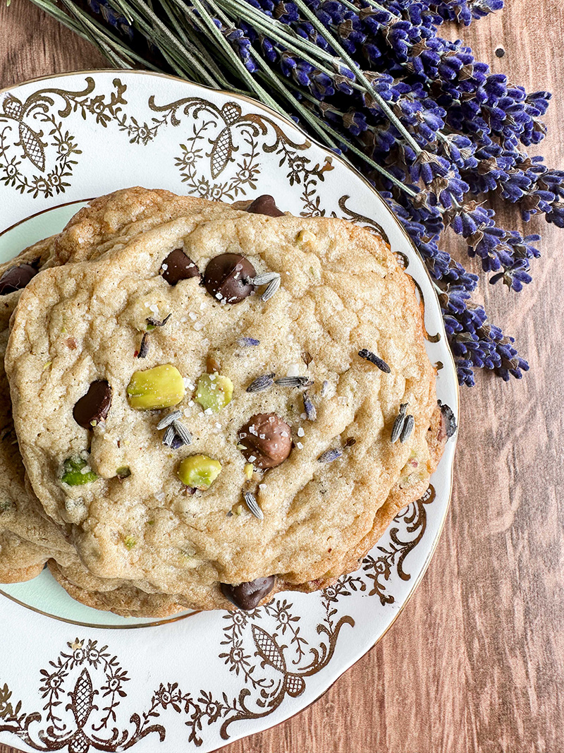 This remix is a fragrant nod to Italy’s love of baking with simple, seasonal ingredients. Julie Thurgood-Burnett of Hereward Farms infuses her farm-grown lavender with the timeless pairing of pistachios and chocolate—two ingredients deeply rooted in Italian desserts, especially in Sicily, where pistachios reign.